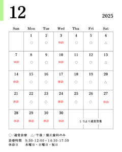年末年始の診療体制ならびに1月の休診日について、下記の通りお知らせいたします。